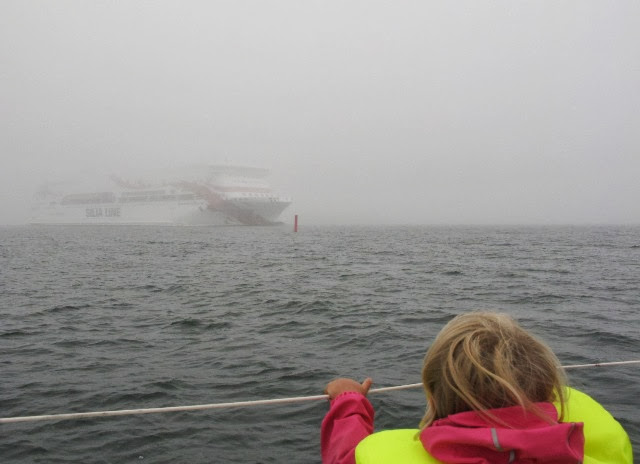 Туман то подкатывал совсем близко, то уходил куда-то к горизонту. Паромы буквально выныривали из туманной пелены. Мы дудели в туманный горн каждые пять минут, как положено!
