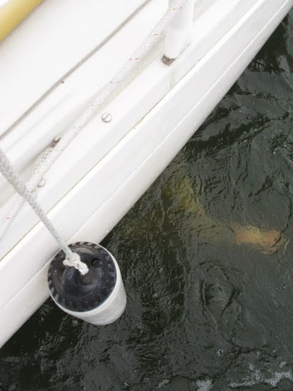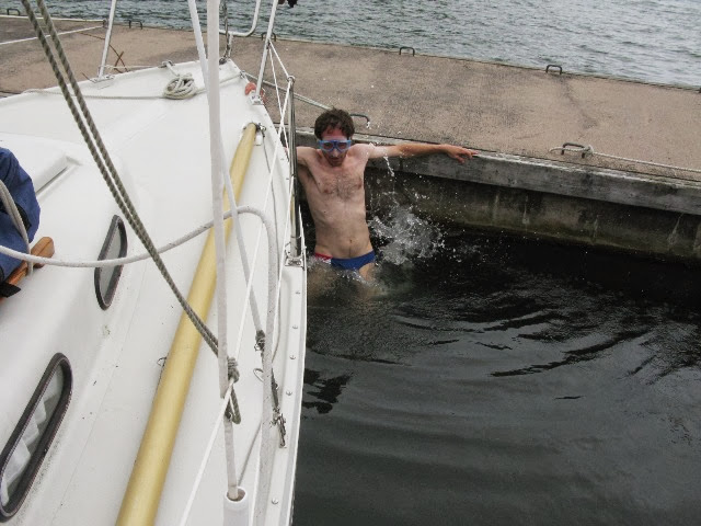 Потери оказались невелики, слава Богу, - небольшой фонарик с ахтерштага и ободранная краска с киля. Наша супер лодка по паспорту имеет такую характеристику: "Выдерживает удар о подводную скалу на скорости 4 узла", мы проверили - всё верно ;). Яхта старая, но и сделана по старинке, т.е. на совесть: корпус литой воедино в килем, ширина корпуса раза в три больше, чем у современных яхт подобного класса. Киль, как оказалось, уже тоже был в том же месте подкрашен прошлым хозяином. Видимо, это особенности шведского яхтинга. Так в судовом журнале нашем появилась вышеуказанная запись.
