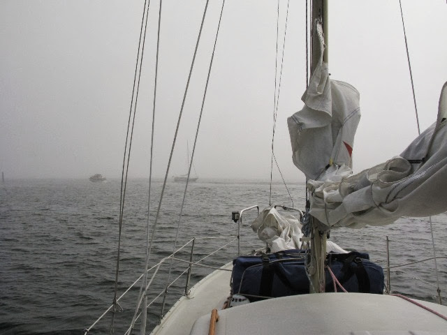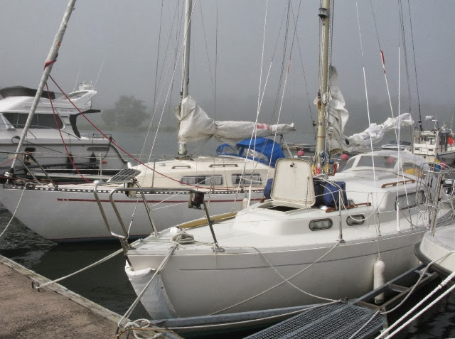 Вообще, ничего такого, в туман тоже ходят и нормально. Одна лодка, явно прибывшая из Финляндии, причалила. С другой стороны, конечно, им уже деваться некуда было, когда их застал туман, не возвращаться же обратно.