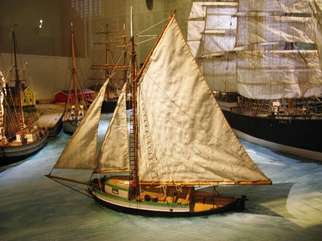 В самом музее макет порта с разнообразными кораблями всевозможных размеров и форматов, старые фотографии времён прекрасных парусных бригов, шхун, барков и баркентин - все реальные парусники, каждый со своей историей.