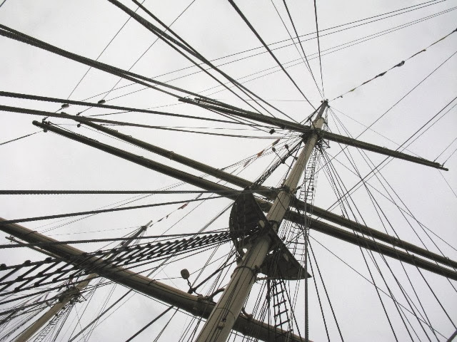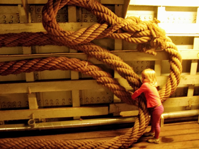 Ну а сам парусник-музей превзошёл наши (мои в частности) ожидания! Огромная верхняя палуба, палубы ниже, трюм. Всё настоящее. Паруса сложены вдоль борта, канаты невероятной толщины, штурвал - не, штурвалище, а такелаж - просто какая-то паутина