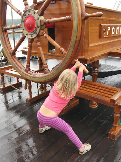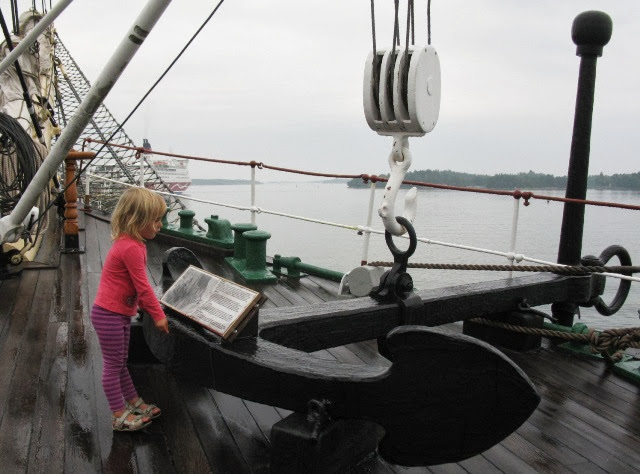 Все так наглядно, что даже мы с Софийкой (Андрея с нами не было - он работал в "плавучем офисе":) прониклись корабельными тонкостями. Например, баркентина размером под 45 метров легко управлялась командой в 7-8 человек. В общем, не такой уж большой корабль как кажется сейчас. Да, но надо помнить, что тогда ж никакой автоматики не было, дизель-шкот натянуть не получится, даже заходили в марину под парусами - последнее в современном мореплавании уже считается совсем форс-мажором.