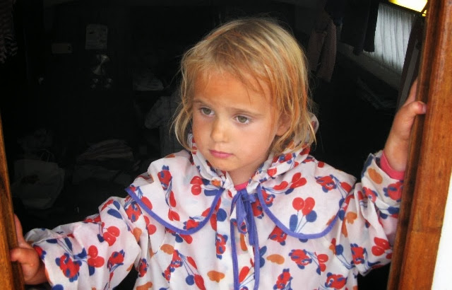 Перед прогулкой по Мариехамну Софийка раскрасила себе лицо и (!) волосы оранжевой краской и ни в коем случае не хотела это всё умывать: "Я же солнечный заяц! Буду всех освещать!" Ладно, не проблем, давай. Так и пошли гулять.